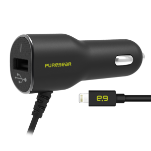 PureGear USB autonabíječka s integrovaným USB-C kabelem - 24W - černá